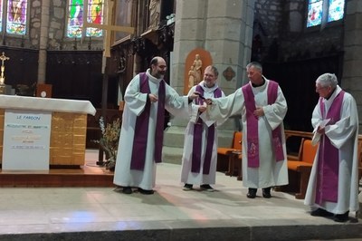 Bénédiction donnée par les 4 prêtres avec le signe de croix