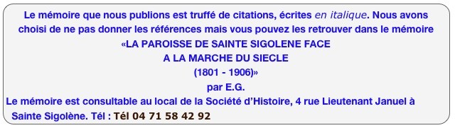 Histoire : La paroisse de Sainte Sigolène de 1801 à 1906
